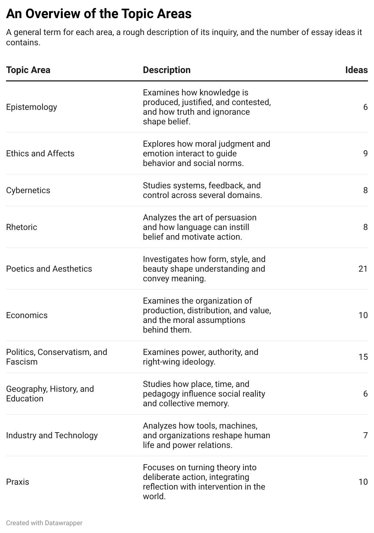 I’ll admit that I have my own preferences, as might be suggested by the uneven distribution of the essay ideas. But the whole point of this exercise is to get some distance from my own biases. I want to understand your priorities. To do just that, I’ve put together a brief survey. It has three parts.
